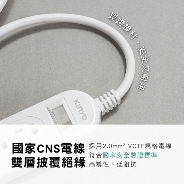 - 採用2.0mm2 VCTFK規格電線,符合國家CNS安全驗證標準。