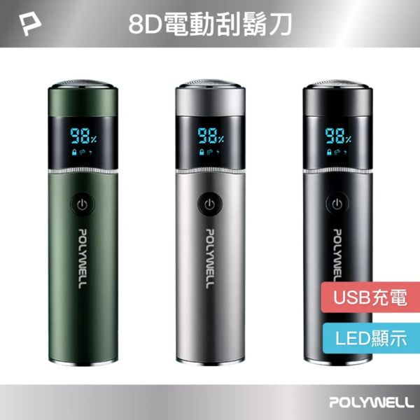 POLYWELL 充電式電動刮鬍刀 USB-C充電 LED螢幕狀態顯示 誤觸保護 清潔通知 快拆設計